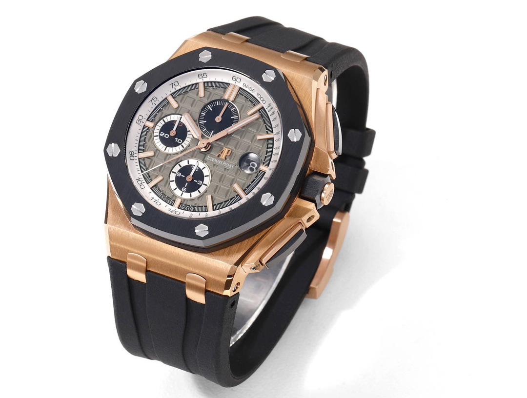 • Supper Clone Audemars Piguet Royal Oak Offshore Black Dial 18kt Rose Gold Black Rubber Chronograph Men's Watch 26178OK.OO.D002CA.03