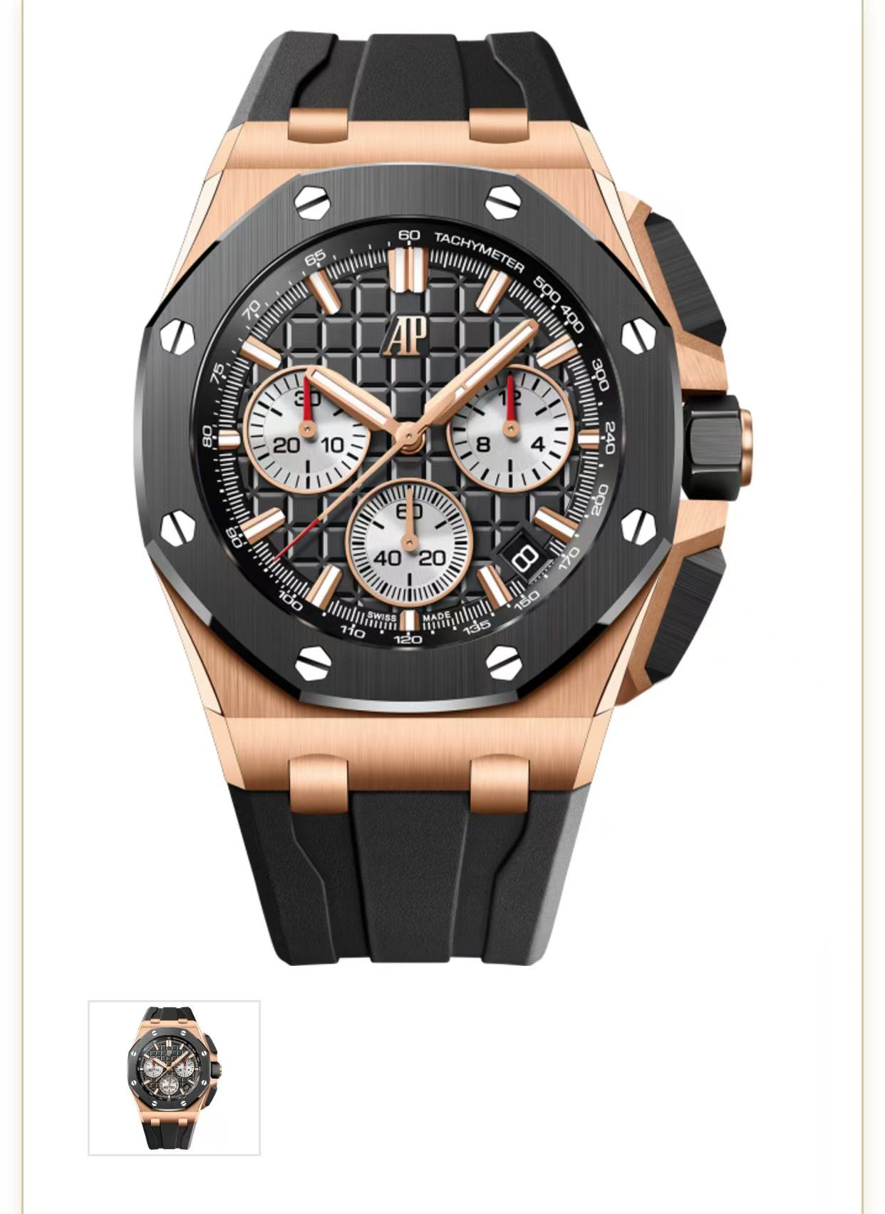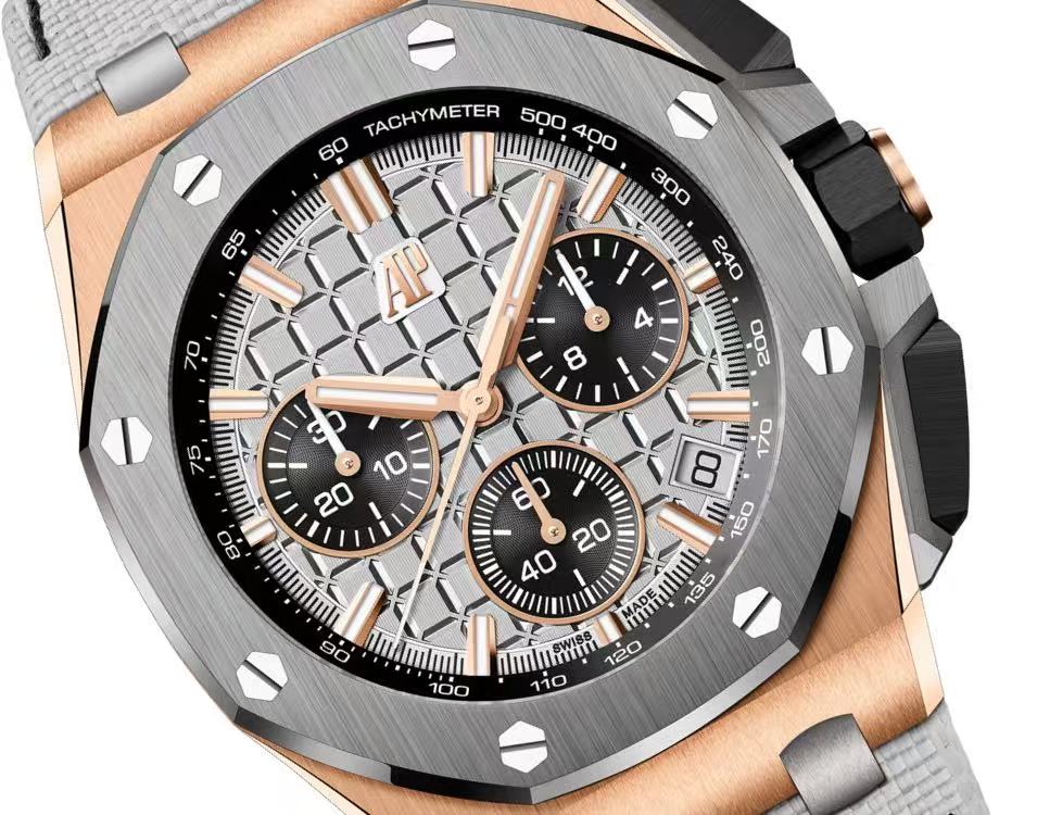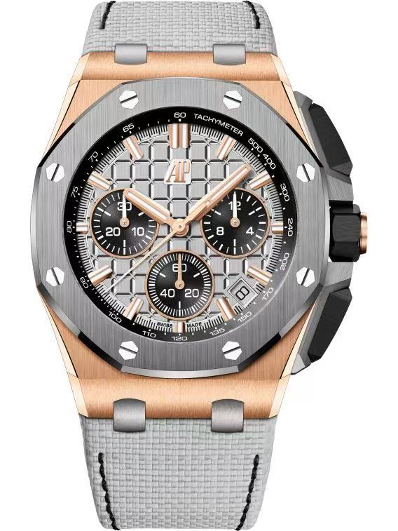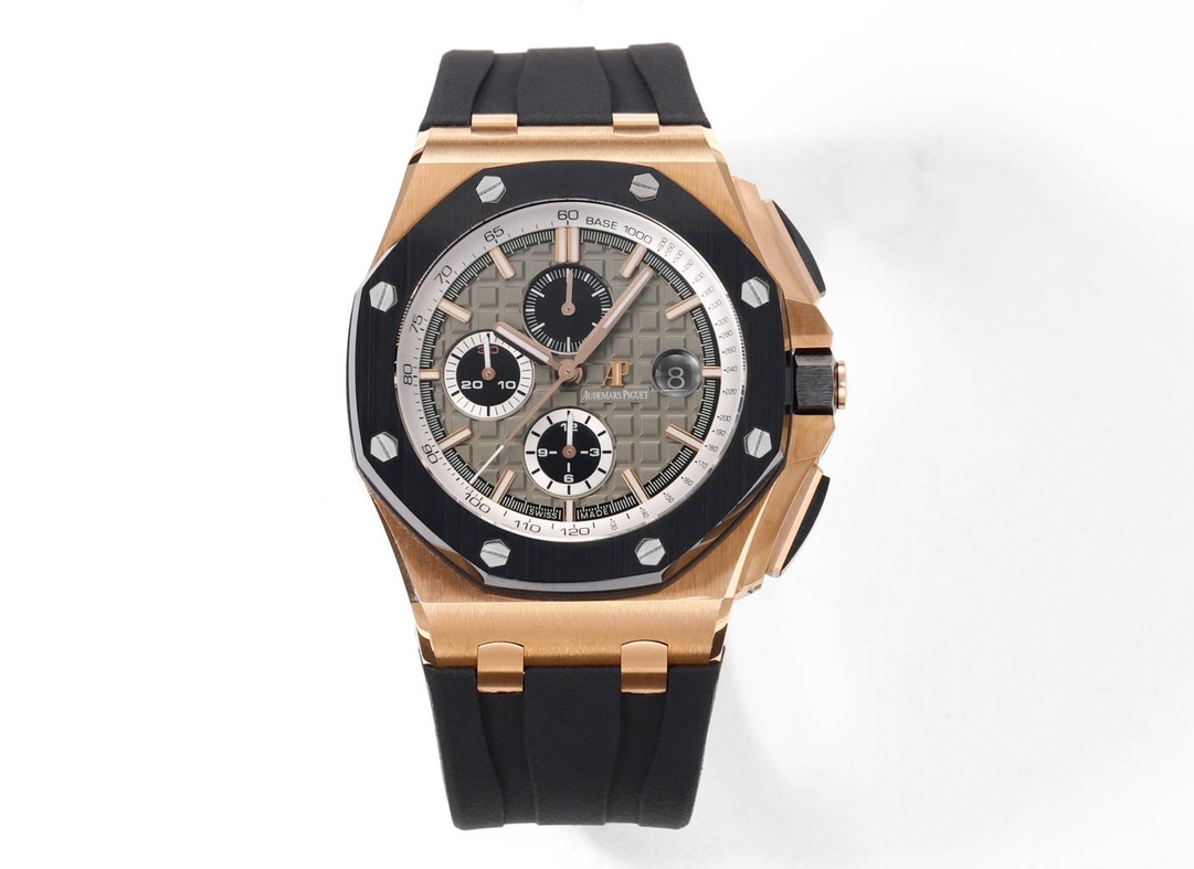 Supper Clone Audemars Piguet Royal Oak Offshore Gray Dial 18kt Rose Gold Gray Rubber Chronograph Men's Watch