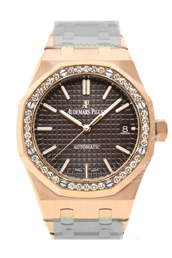 Audemars Piguet Royal Oak 37mm Brown Dial Automatic 18K Pink Gold Ladies Diamond Watch 15451OR.ZZ.1256OR.04