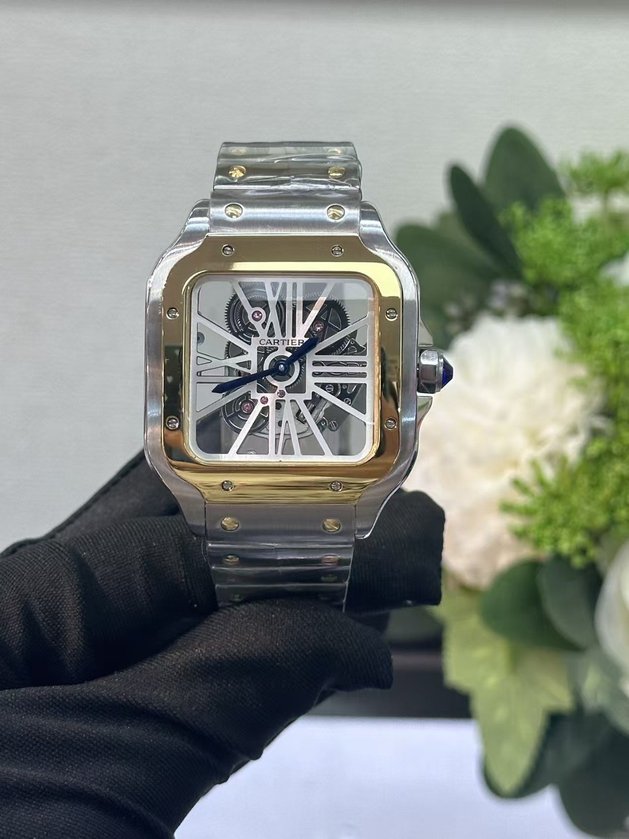 Cartier Santos Skeleton Gold Watch 01