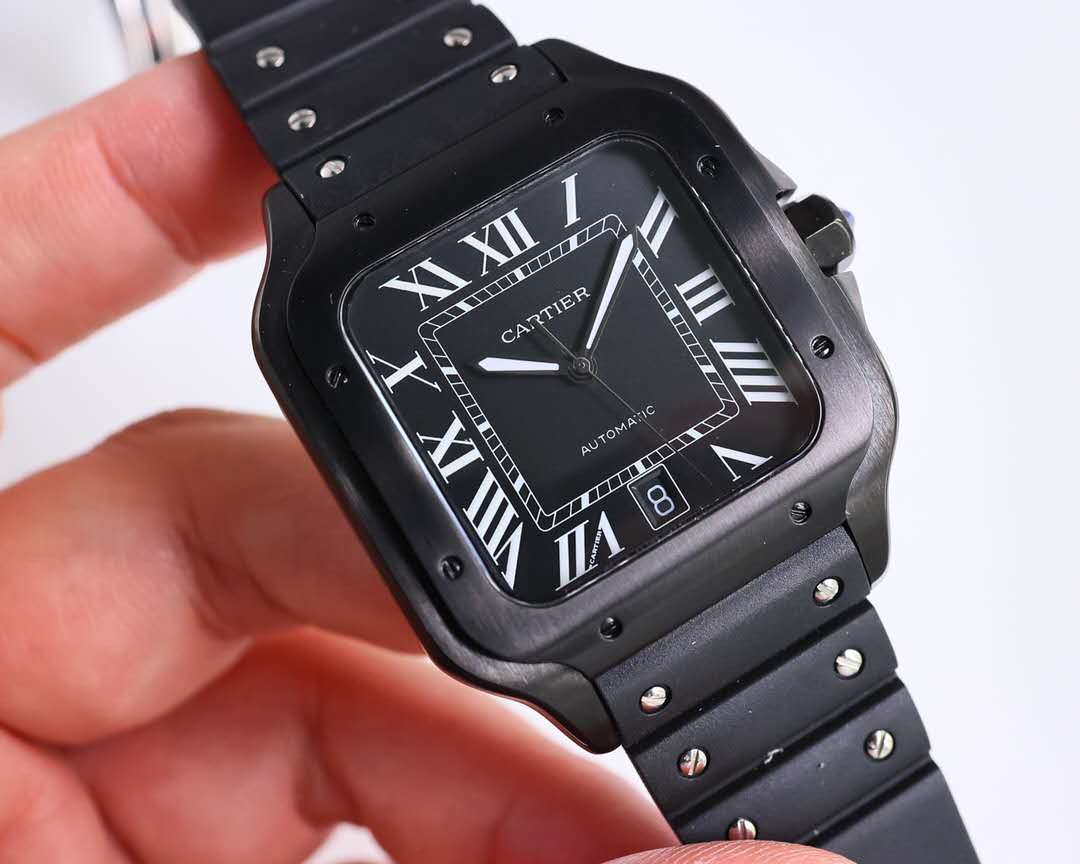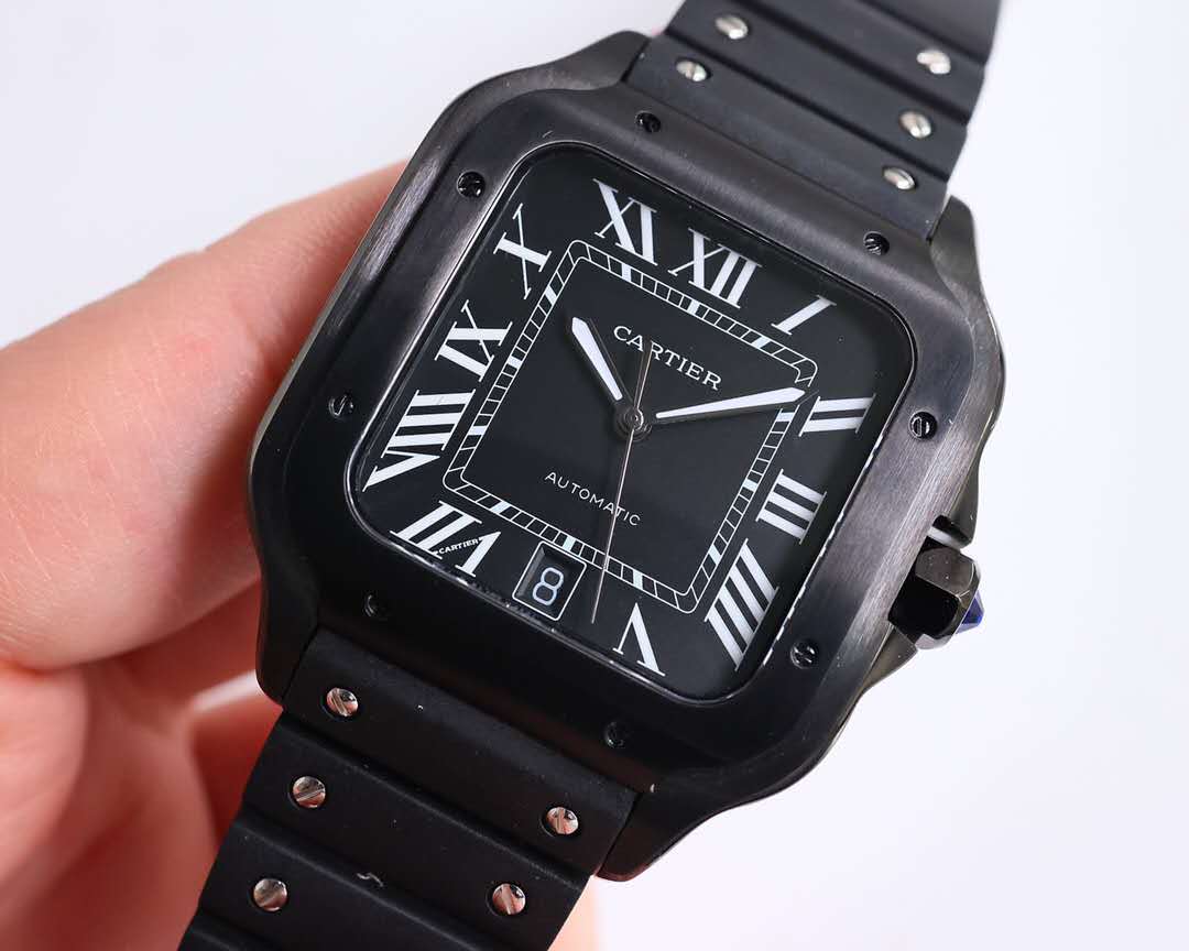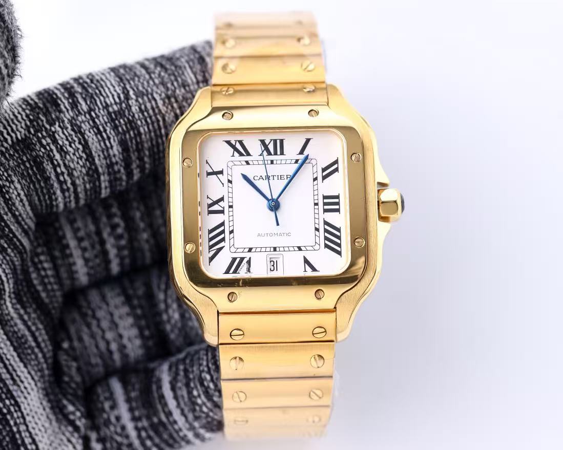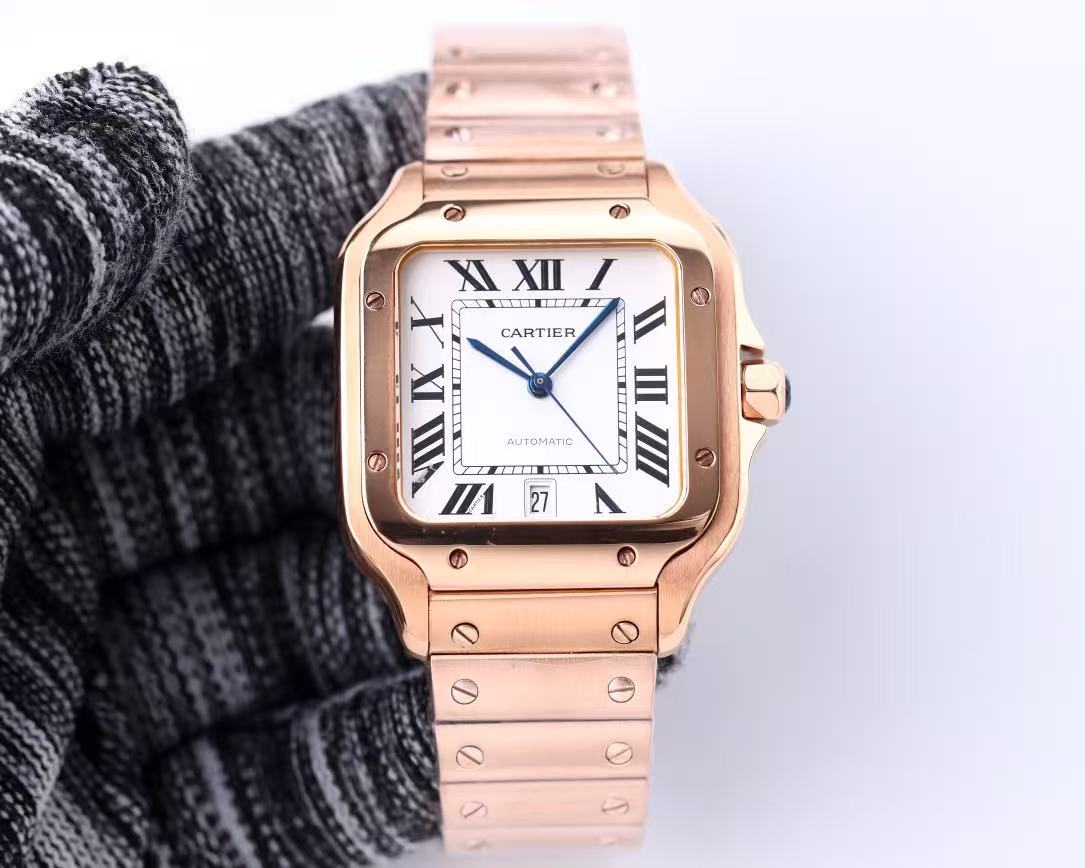 Super Clone Cartier Santos Silvered Opaline Dial Men's Watch 01