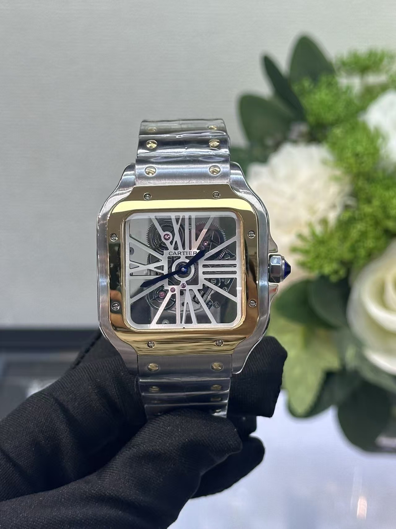 Cartier Santos Skeleton Gold Watch