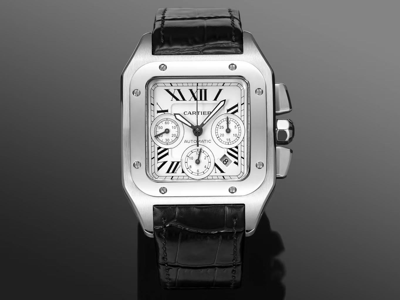 Cartier Santos Silvered Opaline Dial Men's Watch