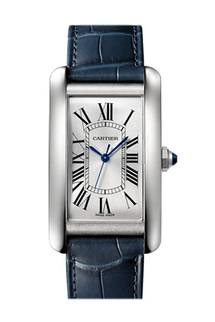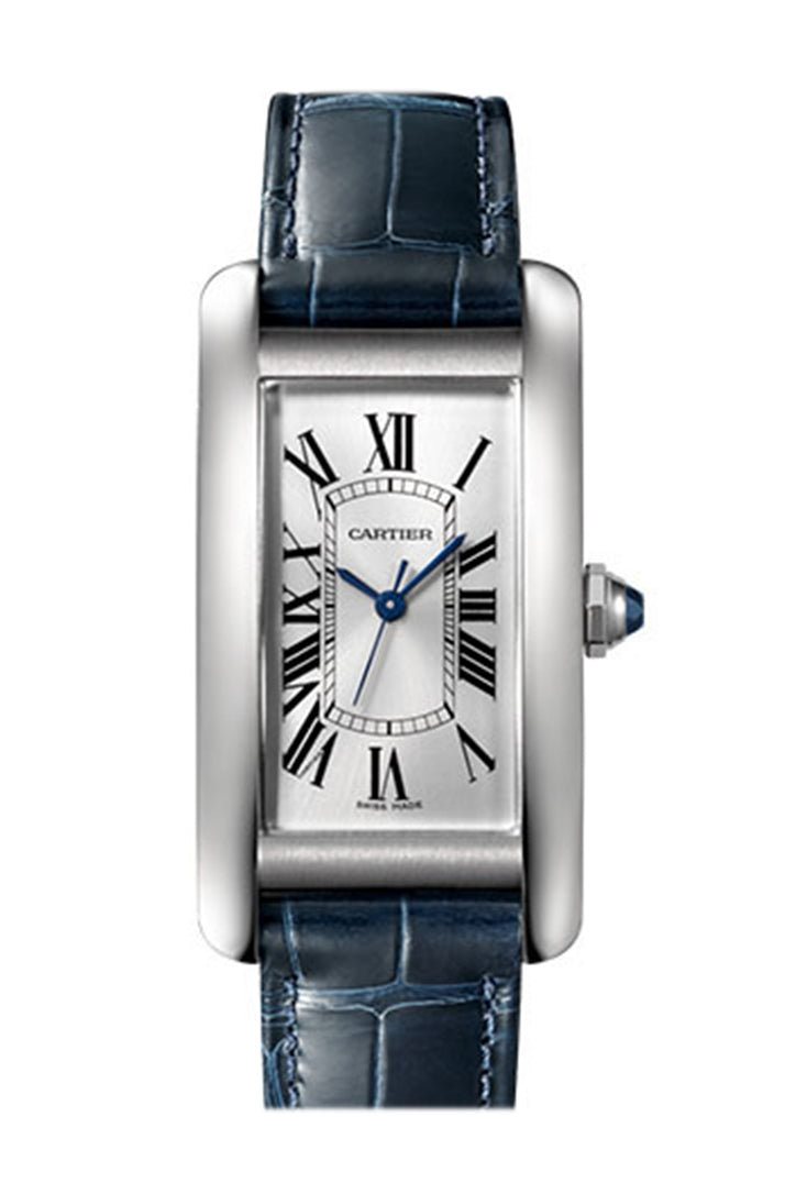 Cartier Tank Americaine Silver Dial Navy Leather Ladies Watch WSTA0016