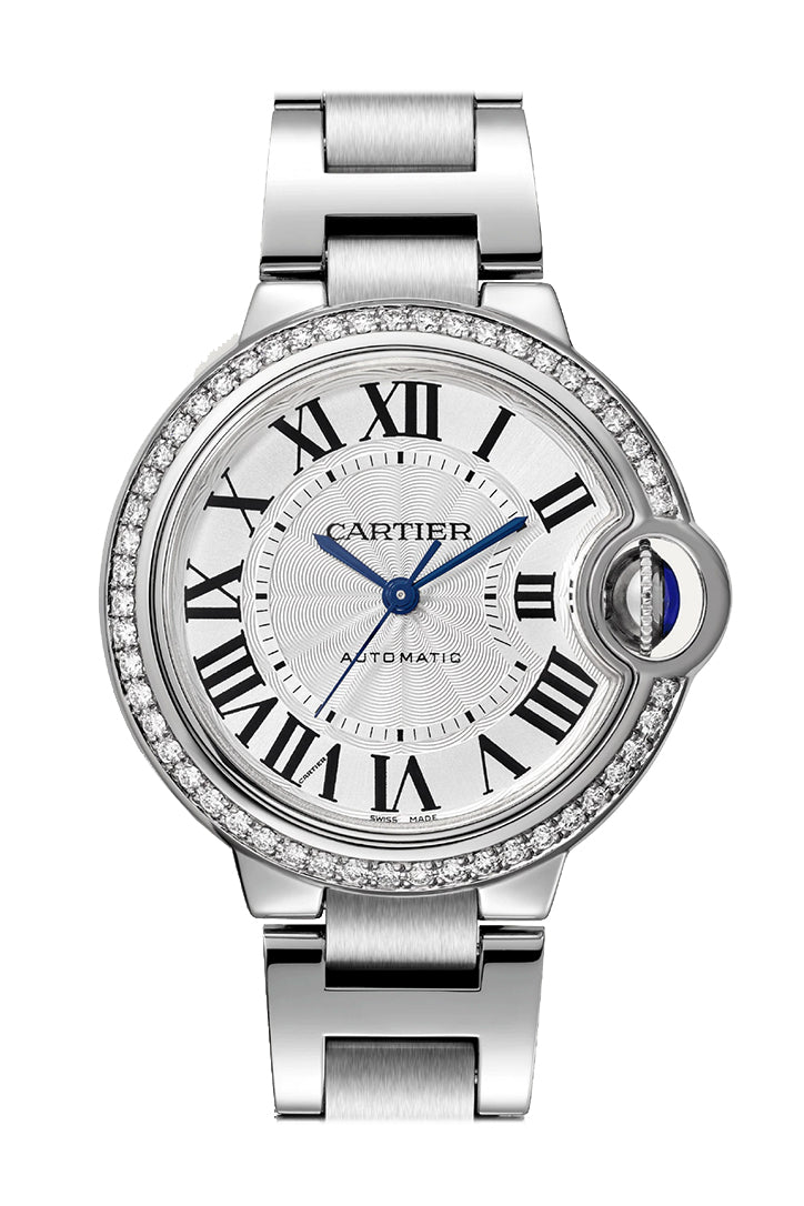Cartier Ballon Bleu De Cartier 33mm Diamond Bezel Silver Dial W4BB0023