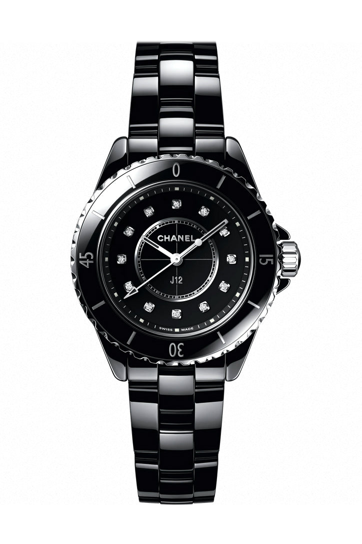 Chanel J12 Diamonds Black Ceramic Ladies Watch H1625