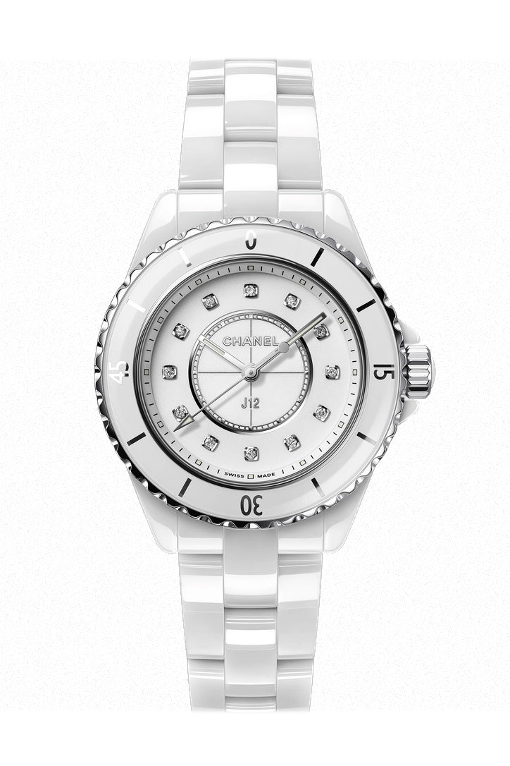 CHANEL J12 White Ceramic Diamonds Quartz Ladies Watch H2422