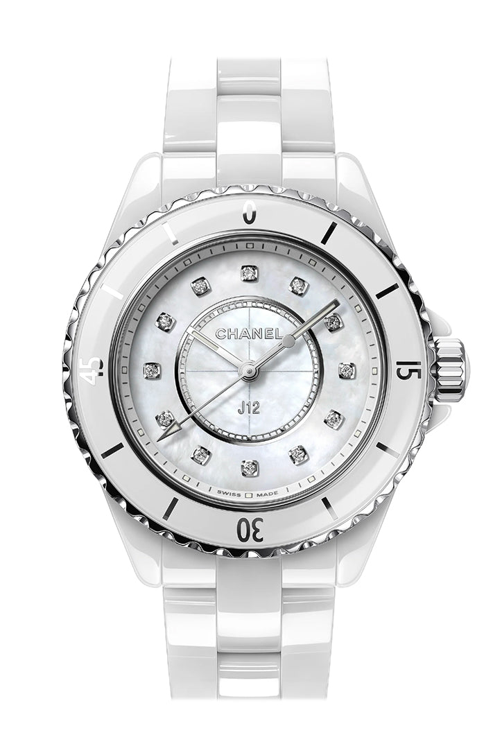 Chanel J12 Mother of Pearl Diamond Dial White Ceramic Unisex Watch H3214