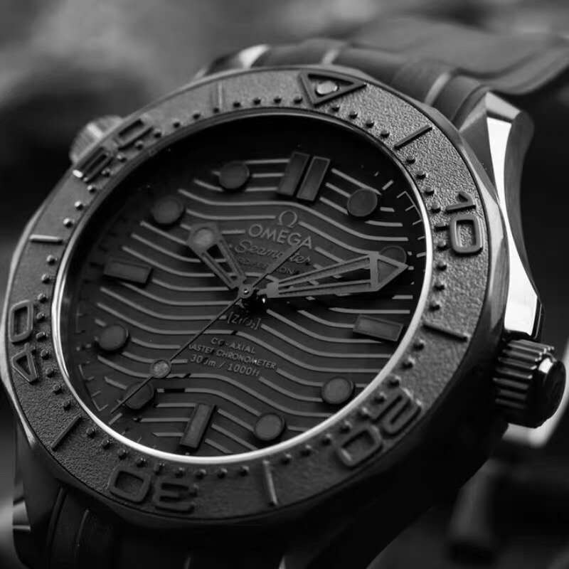 SEAMASTER 300 Black dial Black rubber strap men watch