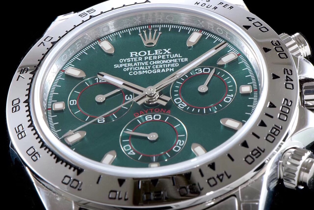 Rolex Cosmograph Daytona Green ring green dial silver Oysterflex Strap Mens Watch 116518LN 01