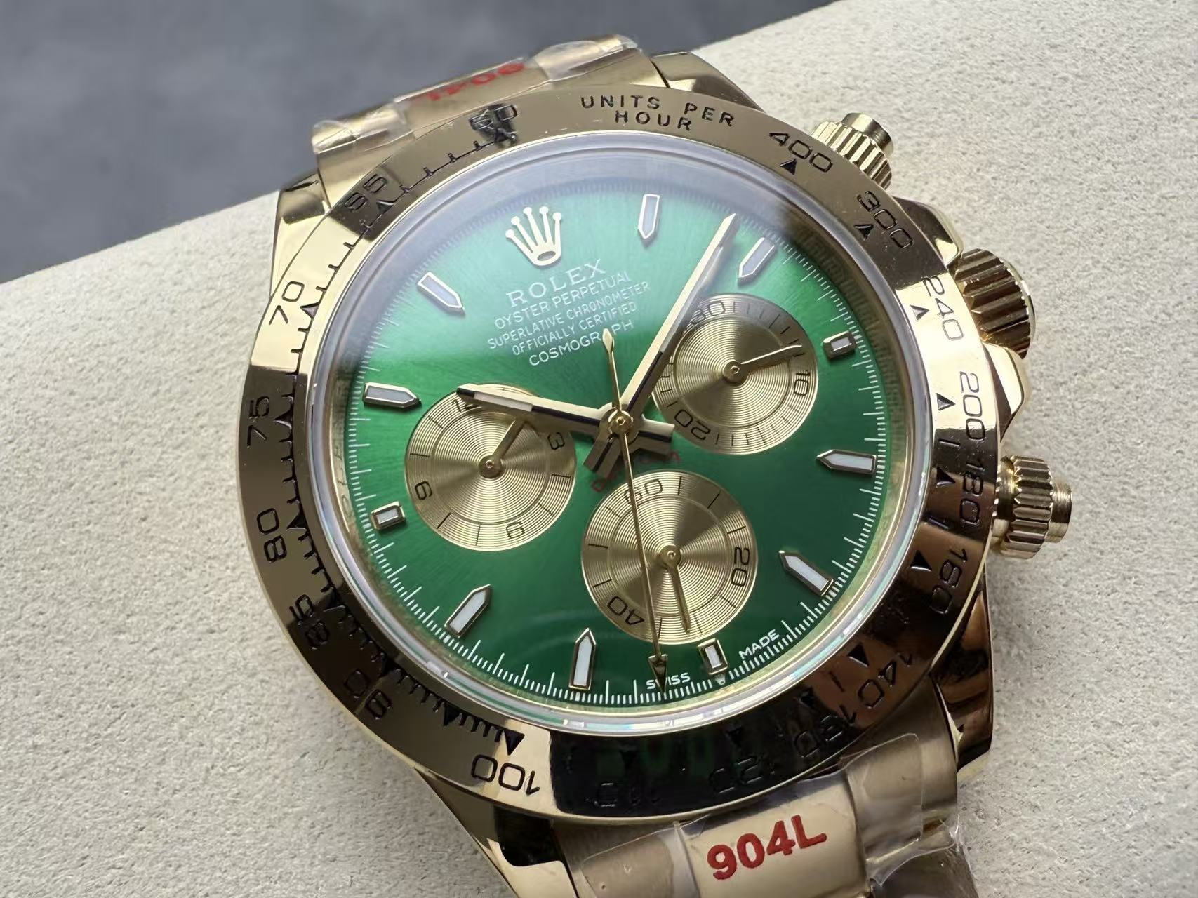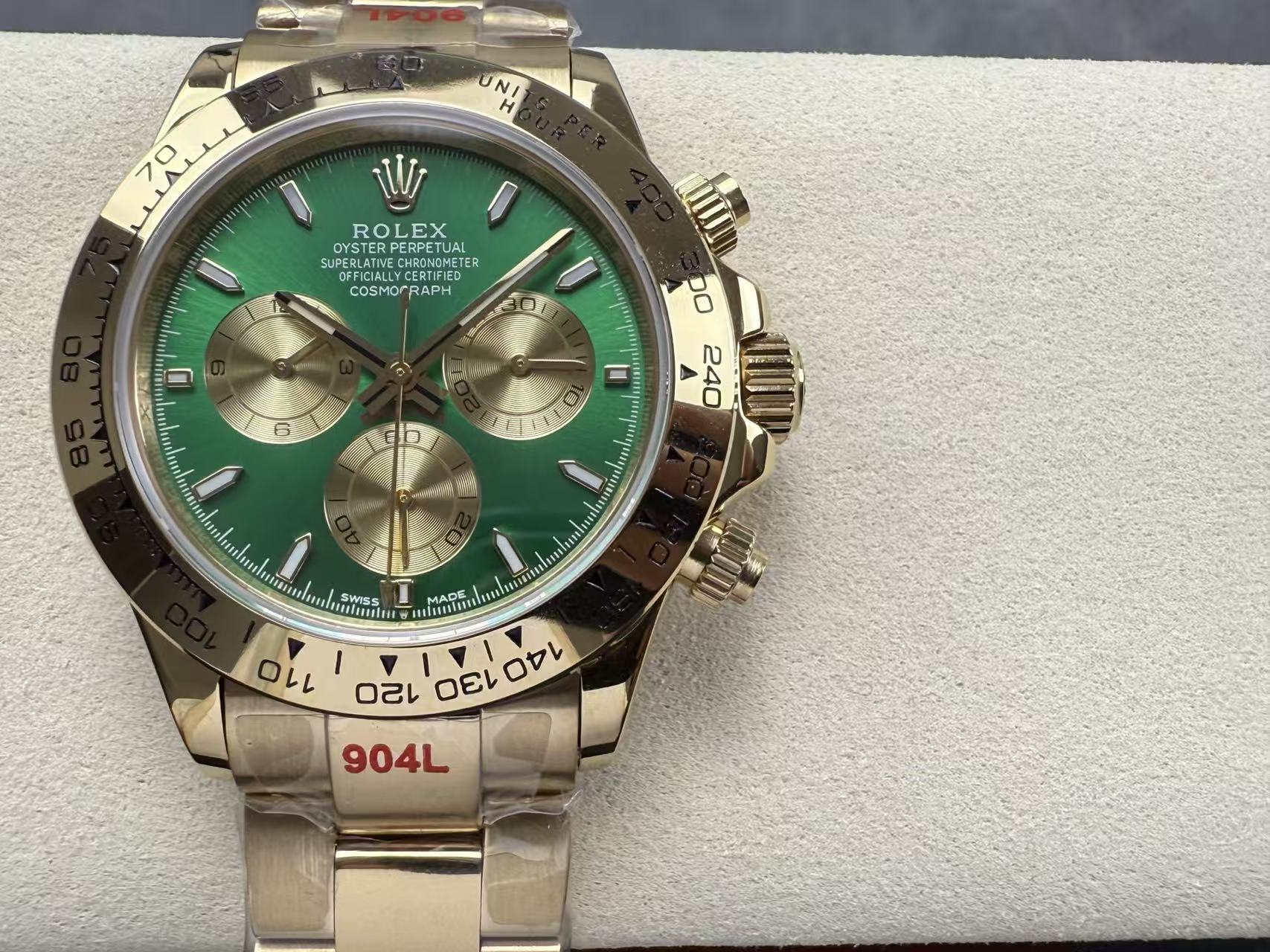 Cosmograph Daytona Green diall Yellow Gold Oysterflex Strap Mens Watch