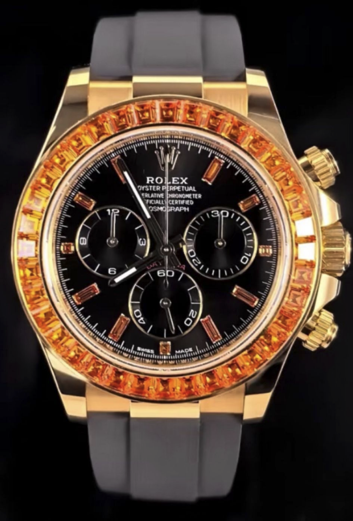Rolex Cosmograph champagne Daytona 40 black Dial Stainless Steel Mens Watch Oysterflex Strap 116599-116598-116595