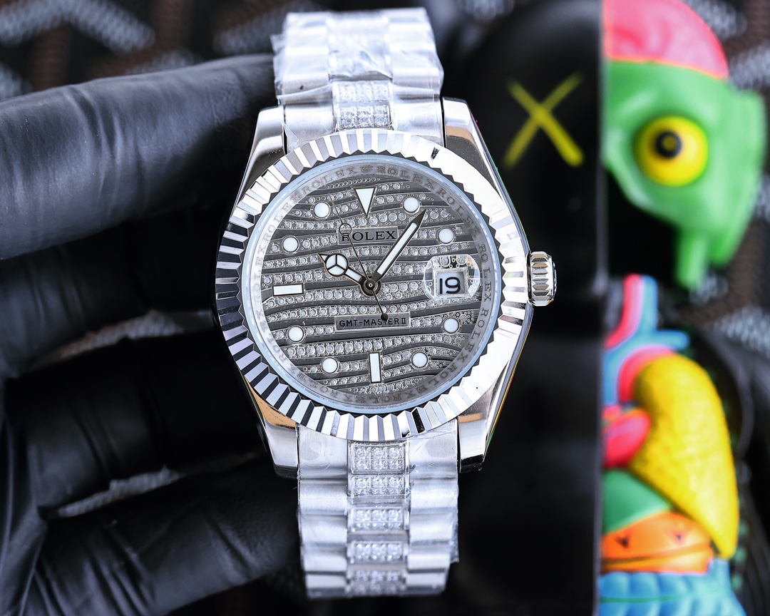 Rolex GMT-Master II Diamond Circle black Dial silver Diamond Strap Men's Watch Top poison