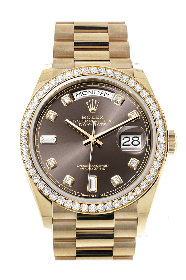 Day-Date 41 Dark Grey Dial Gold Diamond Bezel Watch 128348RBR-0005 128348RBR