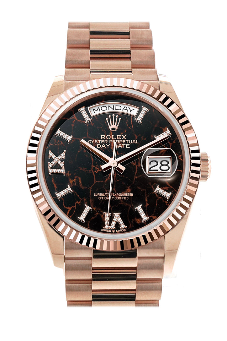 Day-Date 41 Rosé Colour Diamond Dial Fluted Bezel 18K Everose gold Diamond President Watch 128235