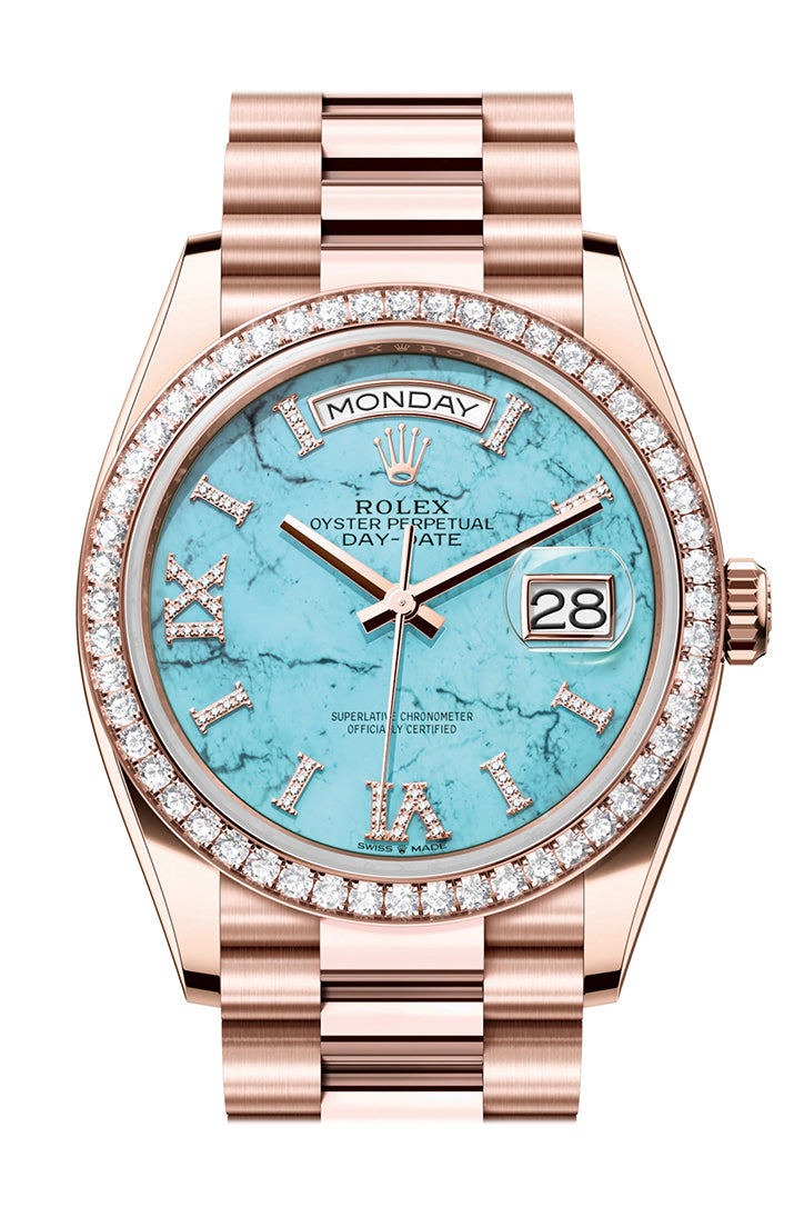 Day-Date 41 Turquoise Dial Diamond Bezel 18K Everose Gold President Watch 128345RBR