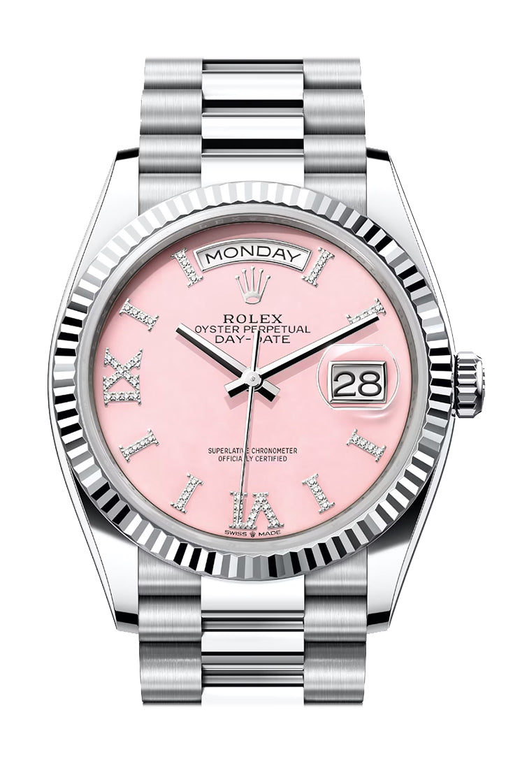 Day-Date 41 Pink Opal Diamond Dial Fluted Bezel Platinum President Watch 128236