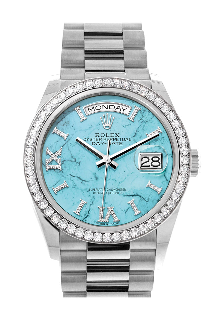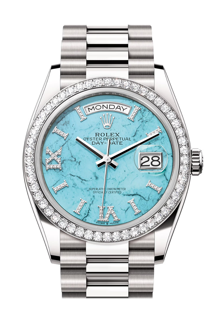 Day-Date 41 Turquoise Diamond Dial Fluted Bezel Platinum President Watch 128241