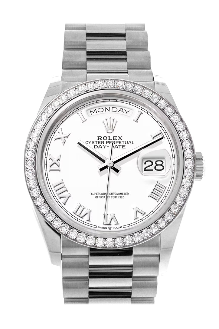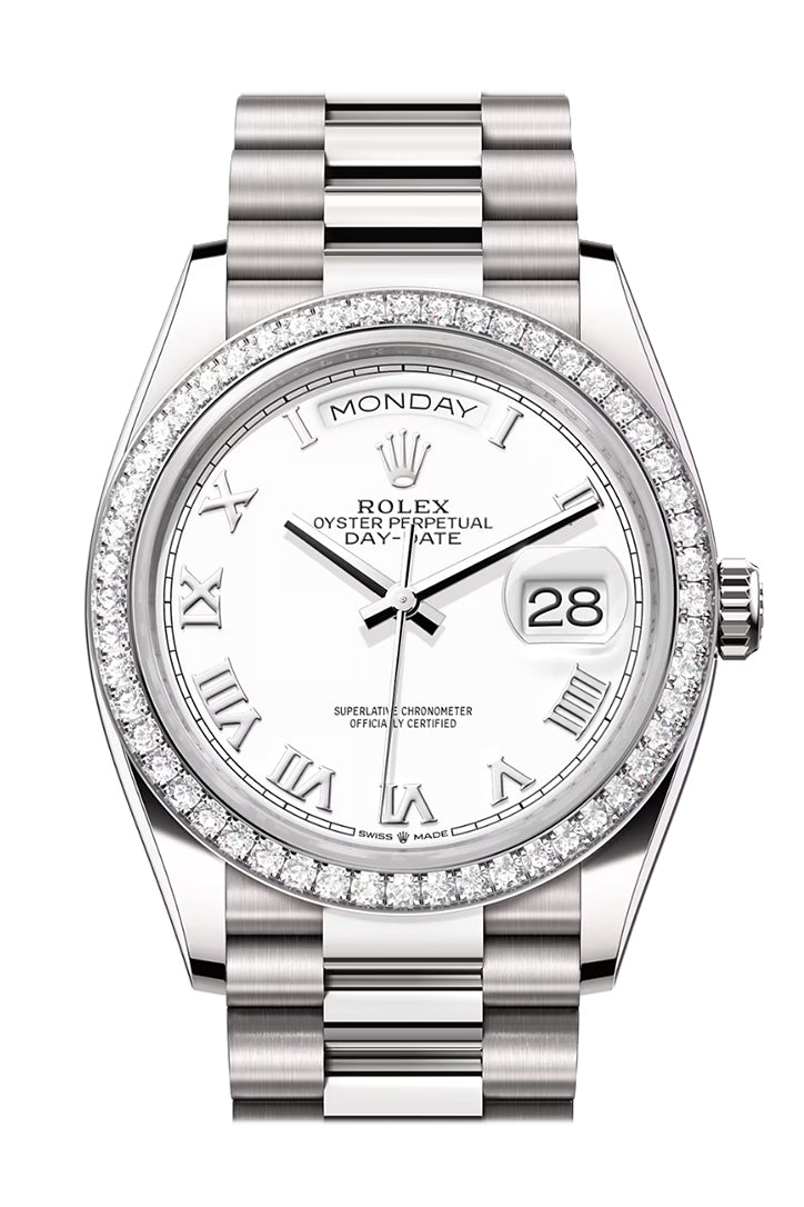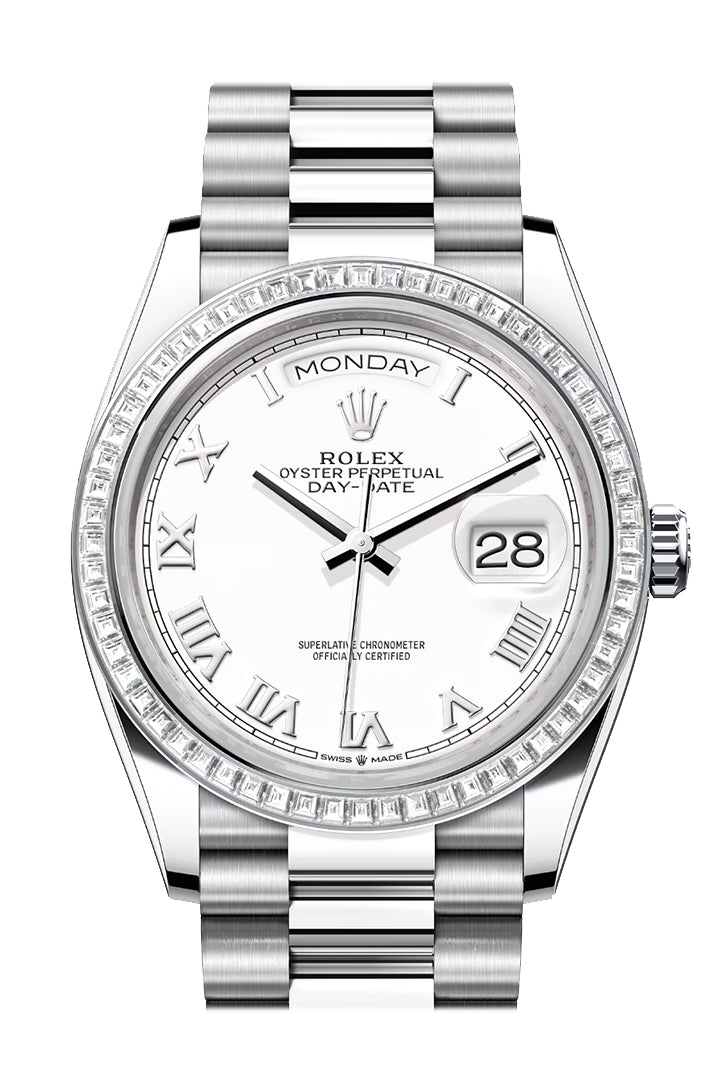 Day-Date 41 White Dial Diamond Bezel Platinum President Watch 128396TBR