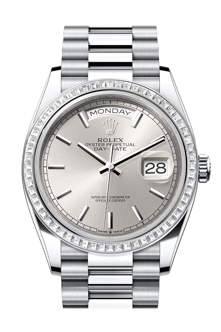 Day-Date 41 Silver Dial Diamond Bezel Platinum President Watch 128396TBR