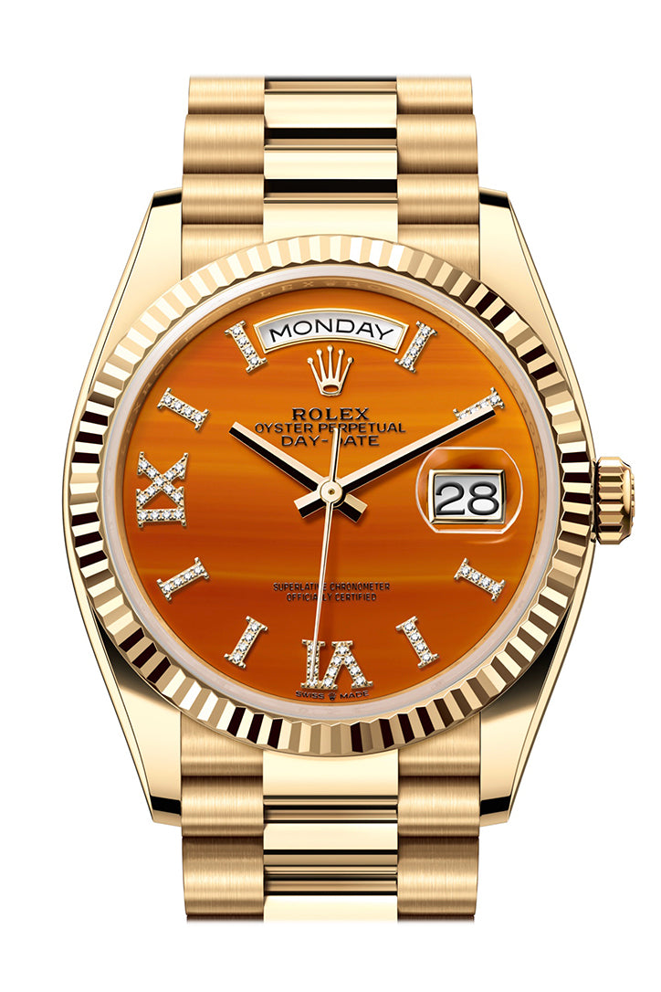 Day-Date 41 Carnelian Dial Gold Fluted Bezel Yellow Gold Watch 128238