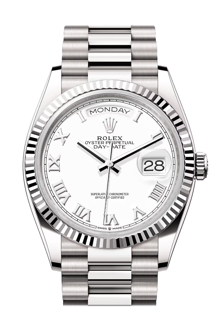 Day-Date 41 White Dial Fluted Bezel White gold President Watch 128239