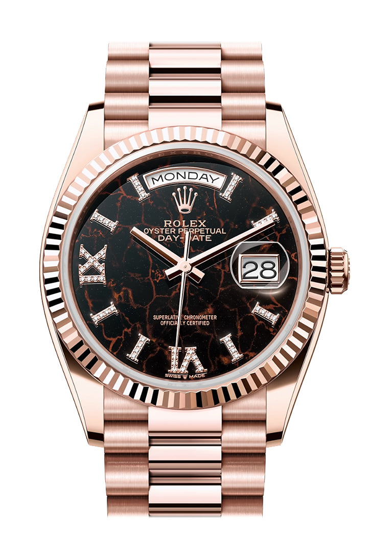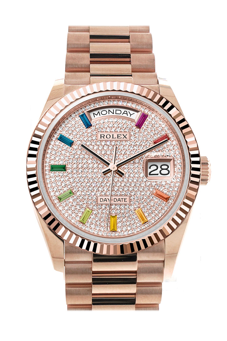 Day-Date 41 Diamond Paved Dial Fluted Bezel 18K Everose gold President Watch 128235