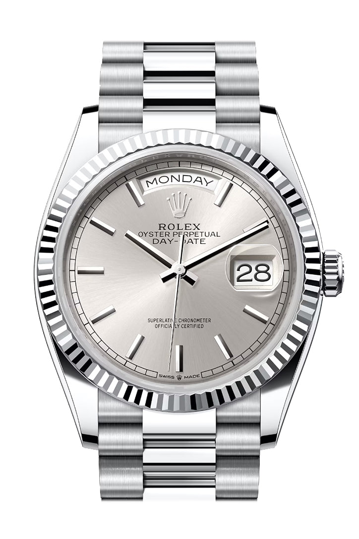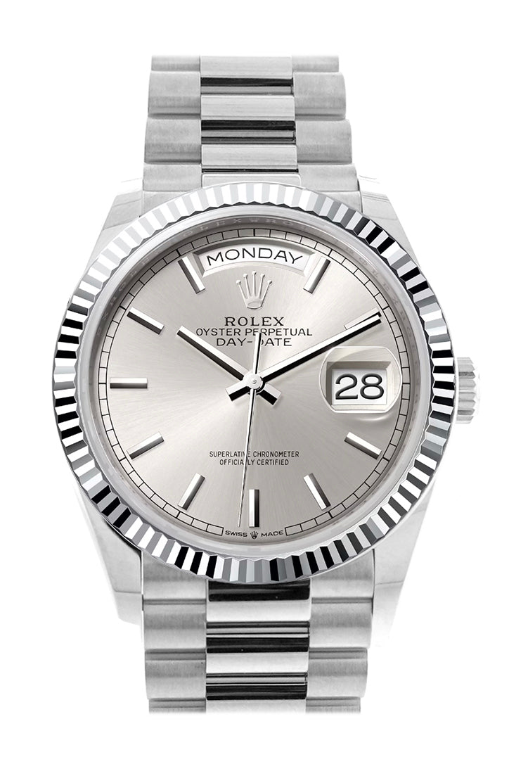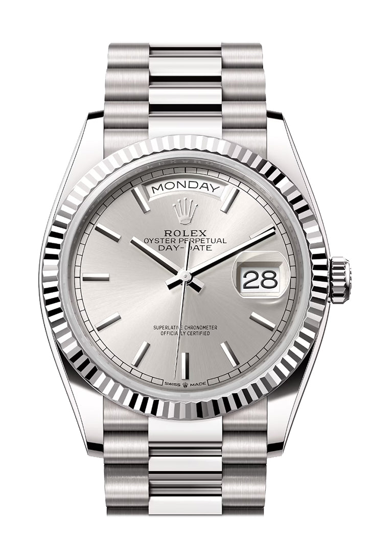 Day-Date 41 Silver Dial Fluted Bezel White gold President Watch 128239