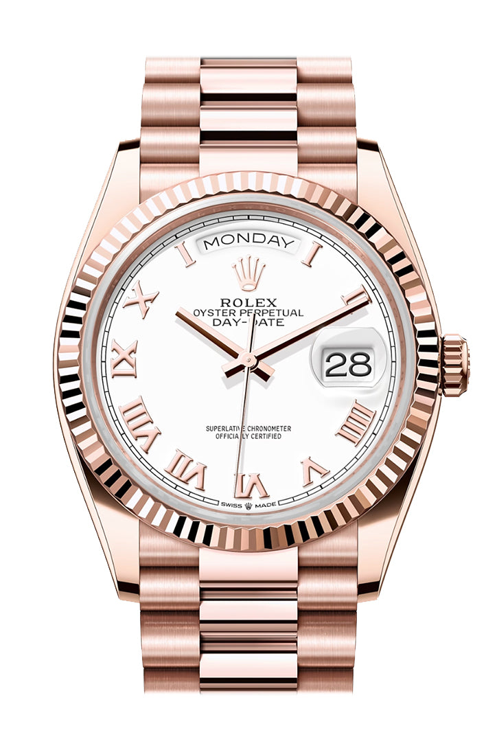 Day-Date 41 White Dial Fluted Bezel 18K Everose gold President Watch 128235