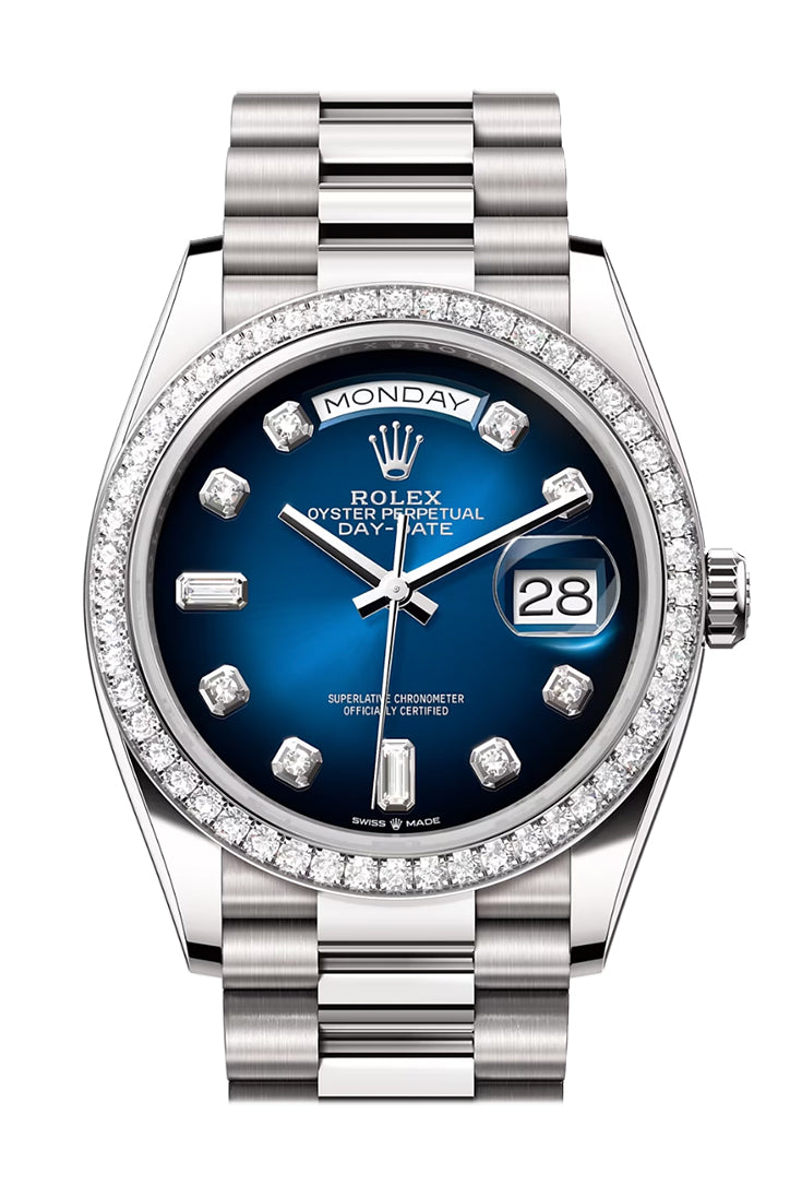 Day-Date 41 Blue ombré Diamond Dial Diamond Bezel White Gold President Watch 128349RBR