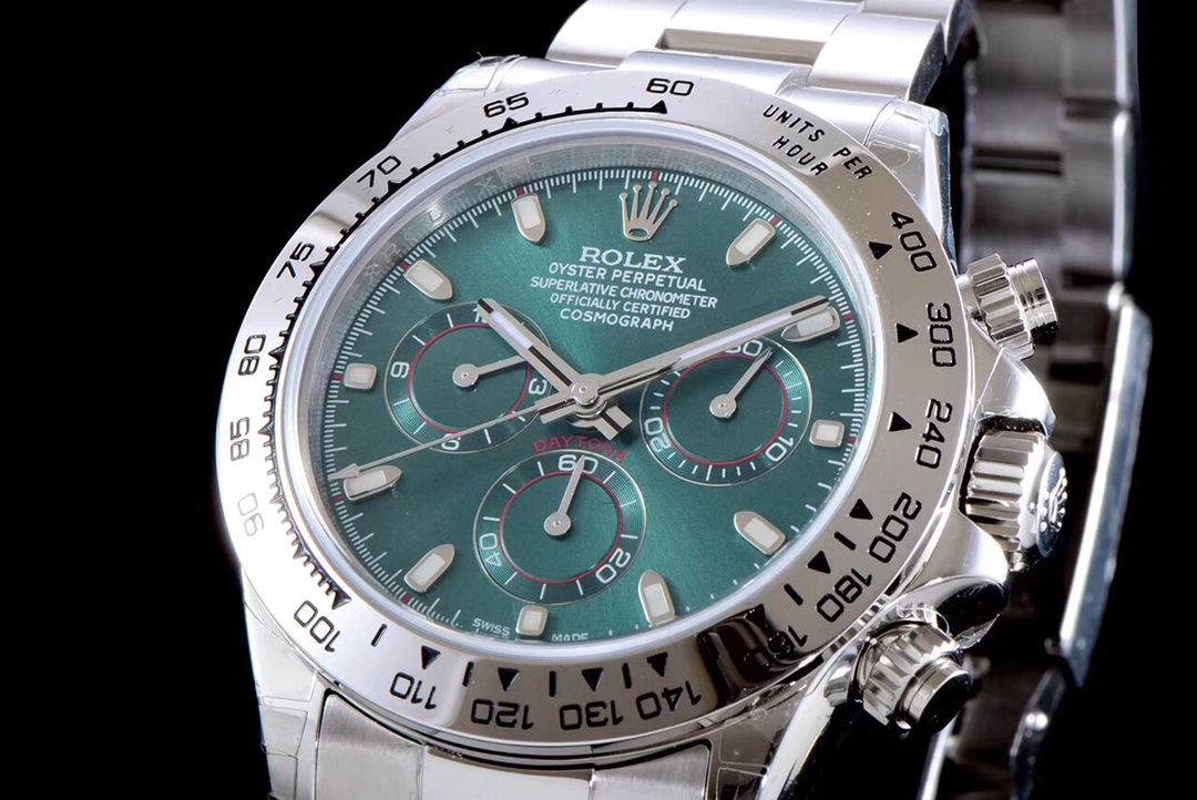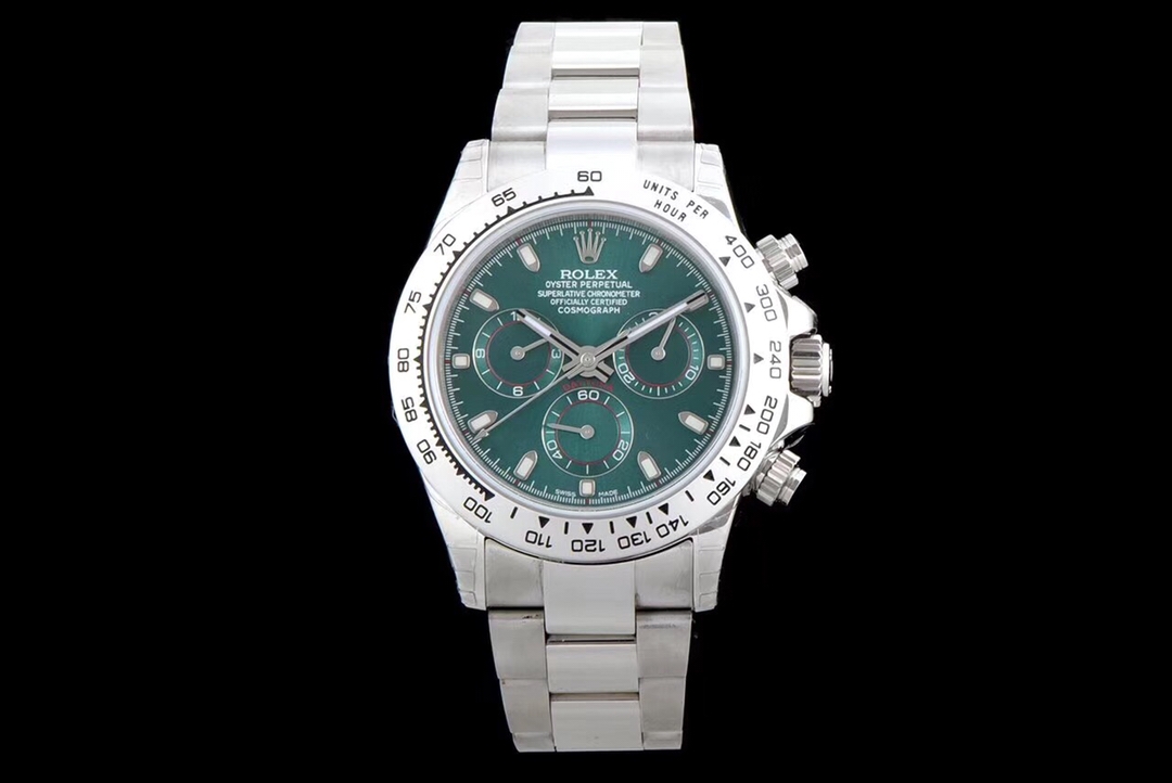 Super Clone Rolex Cosmograph Daytona Green ring green dial silver Oysterflex Strap Mens Watch 116518LN 01