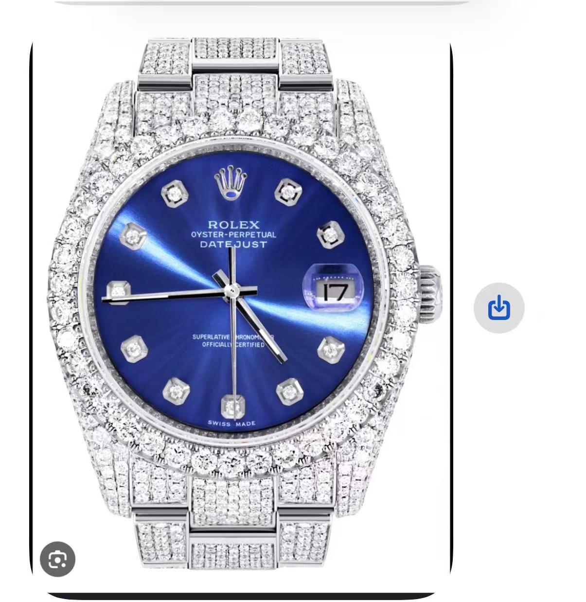 Super Clone Datejust Blue Dial Full diamond Silver Stainless steel Jubilee Watch